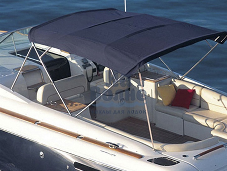 Тент Биминитоп изготовлен из прочной тентовой ткани Оксфорд 600, благодаря чему крыша (козырек) отлично защищает от солнечных лучей и дождя